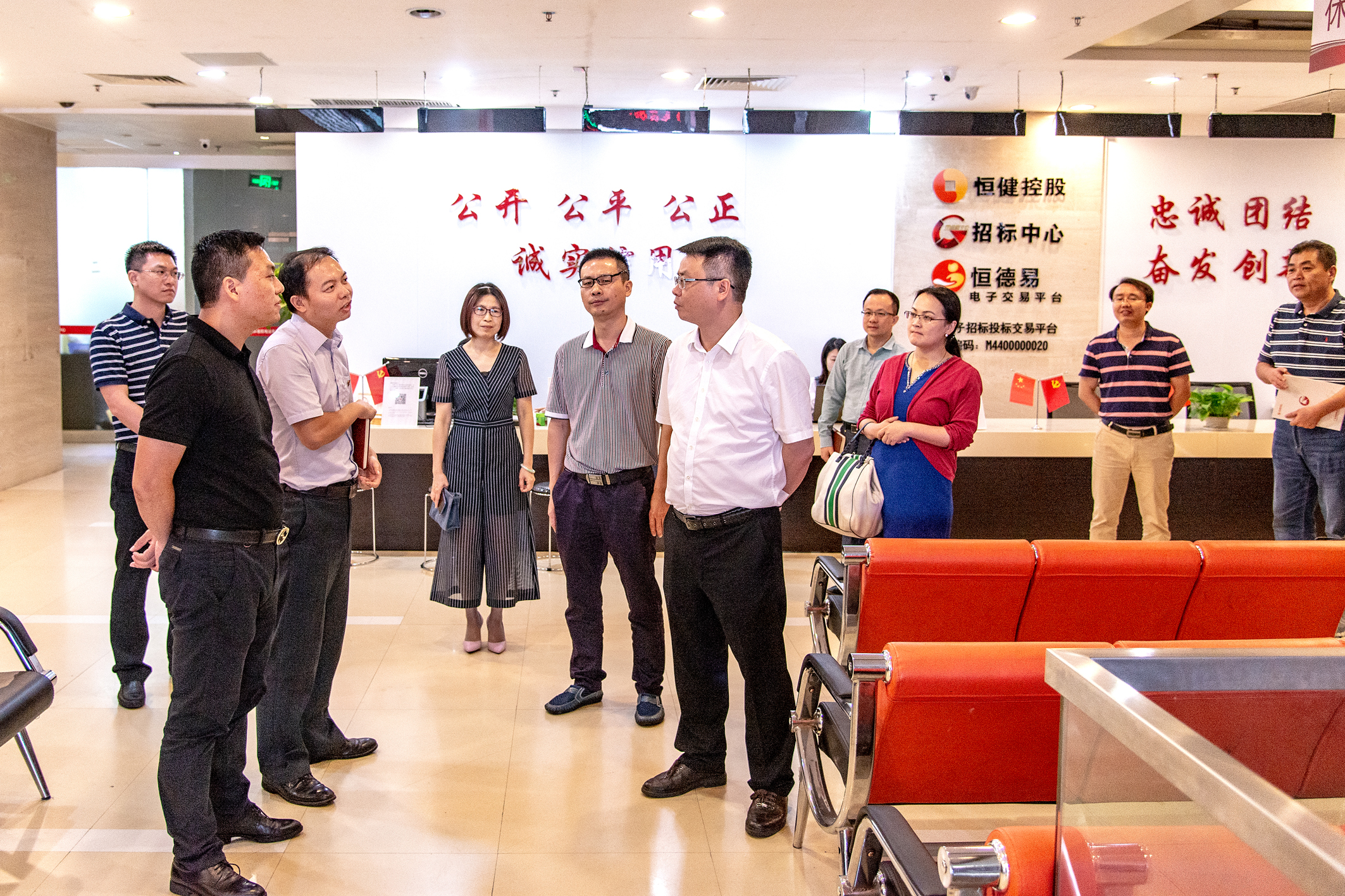 随后,梁君一行到广东招标中心的办公区、电子招标投标交易平台工作场所等处进行了实地参观,他对广东招标中心的办公环境及信息化建设成果表示高度赞赏。